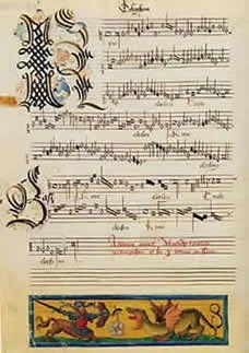 [16th century illustration; one of the foreground figures is believed to represent the composer]